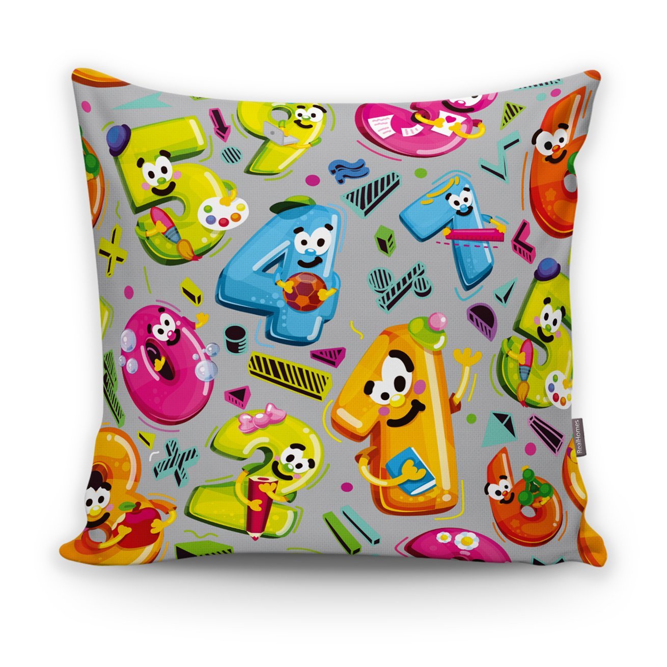 Realhomes Renkli Sayılar Dijital Baskılı Modern Kırlent Kılıfı