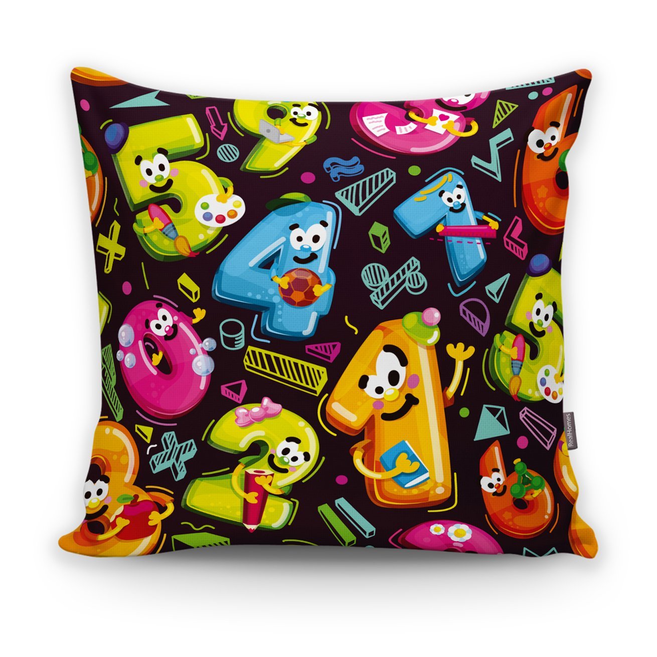 Realhomes Renkli Sayılar Dijital Baskılı Modern Kırlent Kılıfı