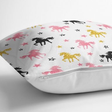Realhomes Renkli Unicorn At Tasarımlı Dijital Baskılı Modern Yastık Kırlent Kılıfı