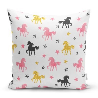 Realhomes Renkli Unicorn At Tasarımlı Dijital Baskılı Modern Yastık Kırlent Kılıfı