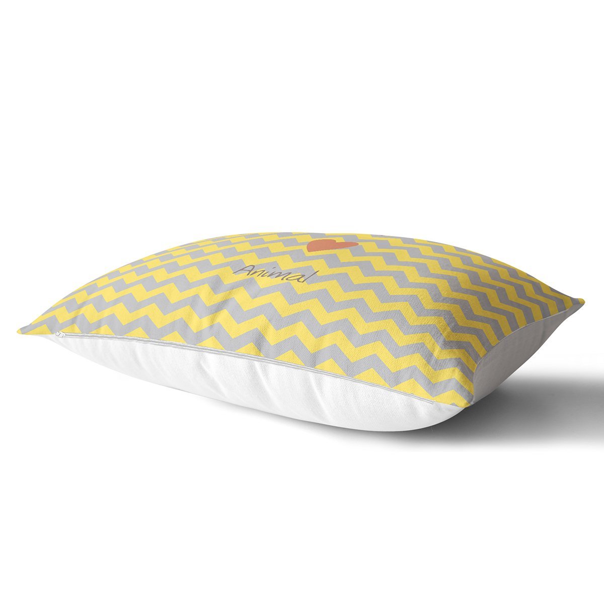Realhomes Sarı Gri Zikzaklı I Love Animal Desenli Modern Dikdörtgen Yastık Kırlent Kılıfı