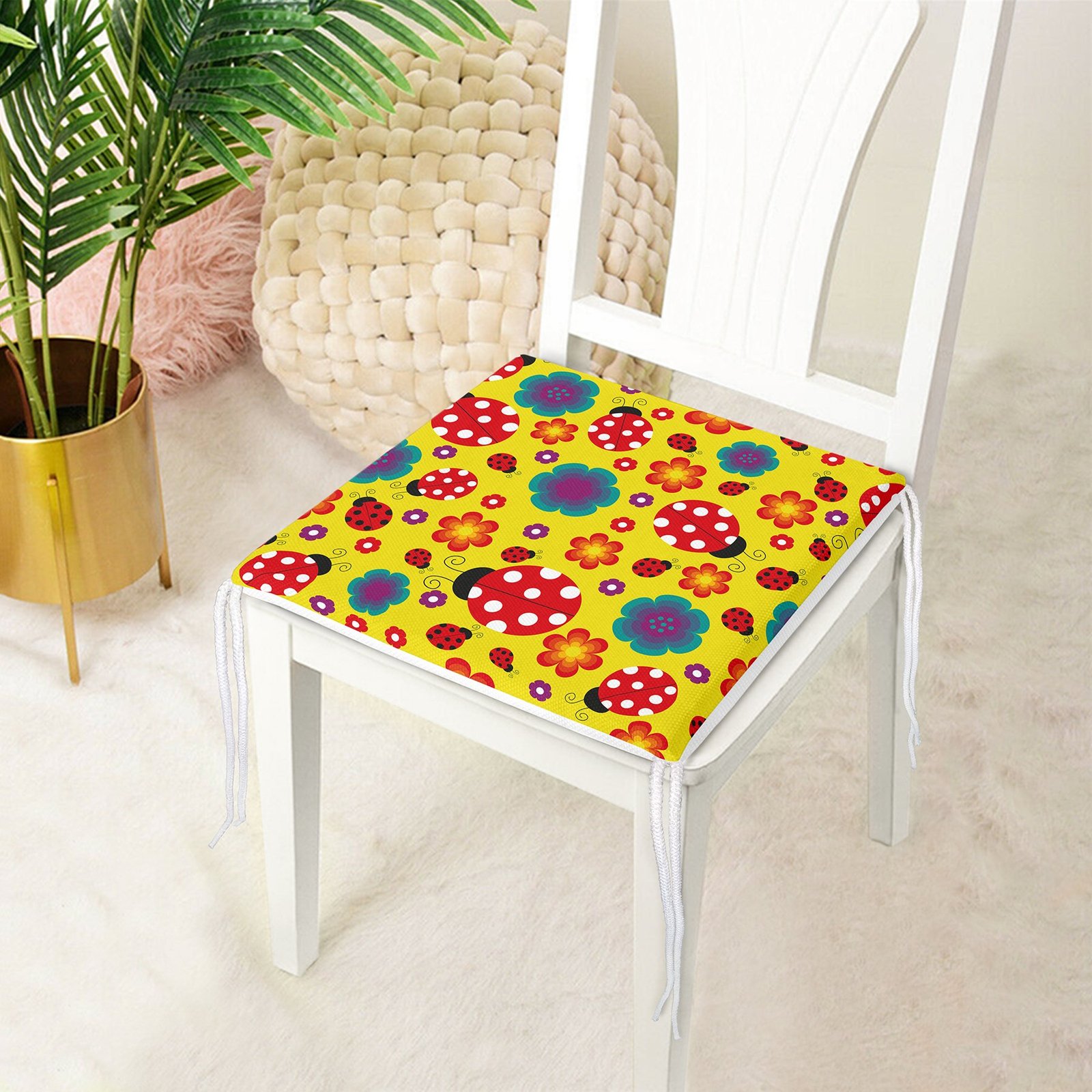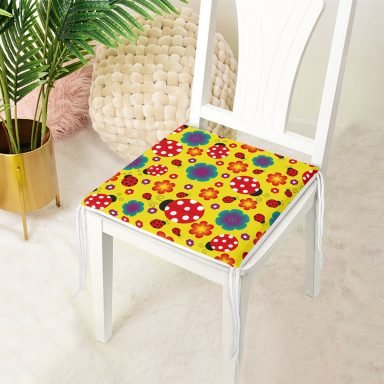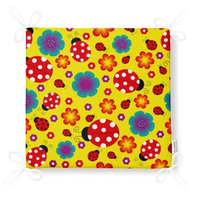 Realhomes Sarı Zeminde Uğurböceği Dijital Baskılı Modern Sandalye Minderi