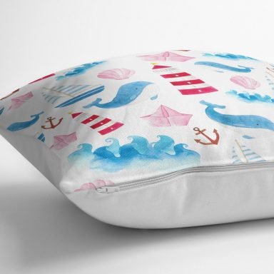 Realhomes Sevimli Balina Desenli Dijital Baskılı Modern Yastık Kılıfı