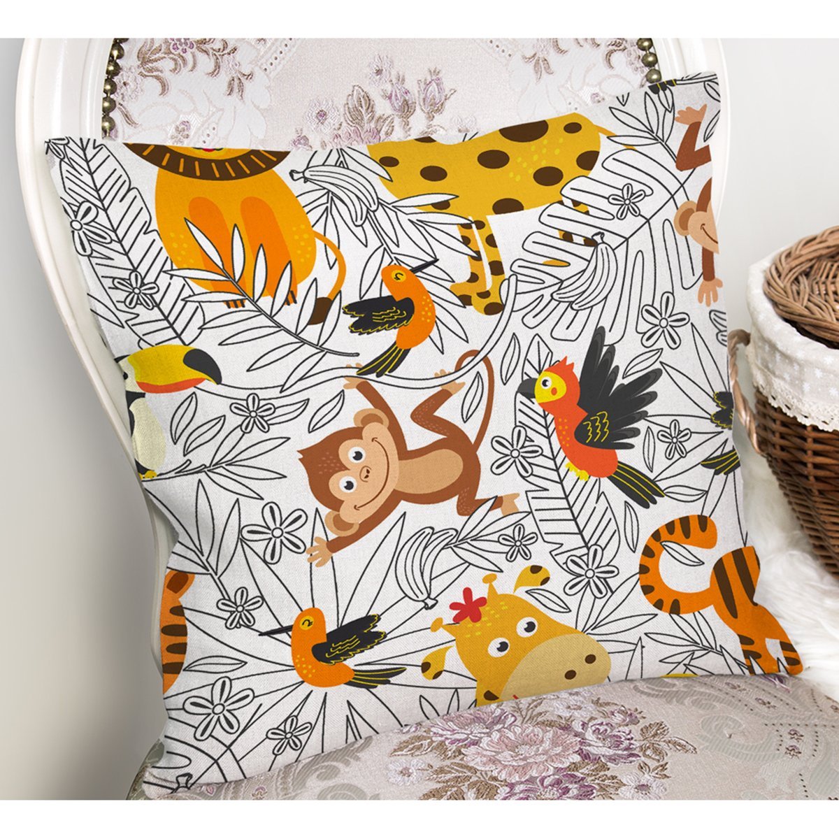 Realhomes Sevimli Hayvanlar Çizimli Özel Tasarım Dijital Baskılı Modern Yastık Kırlent Kılıfı