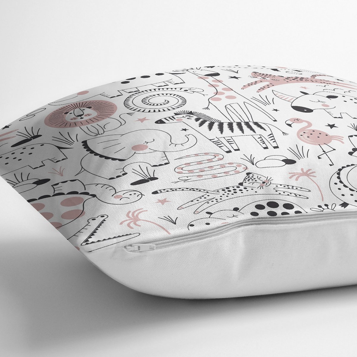 Realhomes Sevimli Hayvanlar Çizimli Özel Tasarım Dijital Baskılı Modern Yastık Kırlent Kılıfı
