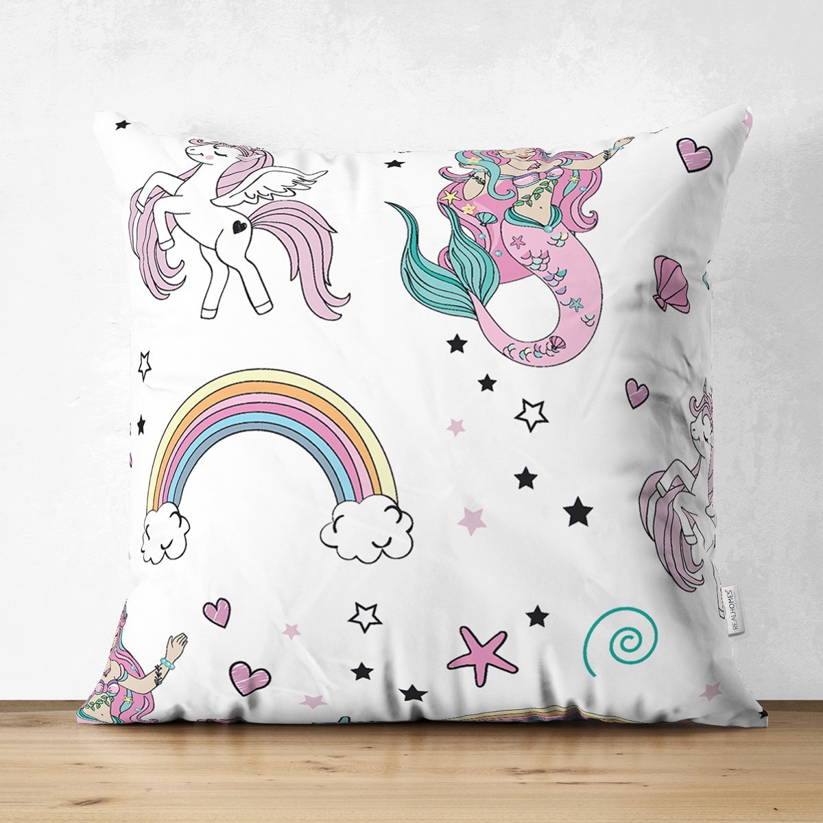 Realhomes Unicorn ve Deniz Kızı Tasarımlı Dijital Baskılı Çocuk Odası Süet Yastık Kırlent Kılıfı