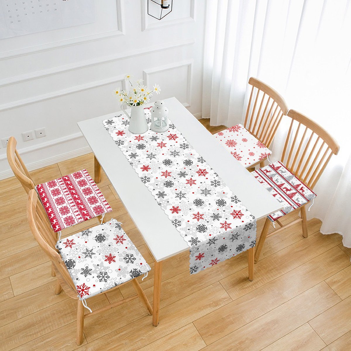 RealHomes Yılbaşı Özel 4 Fermuarlı Sandalye Minderi ve Runner Seti