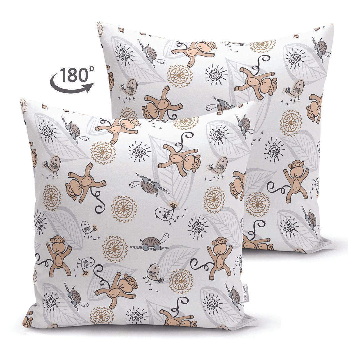 Realhomes Zıpzıp Maymuncuk Özel Tasarım Dijital Baskılı Çocuk Odası Süet Yastık Kırlent Kılıfı