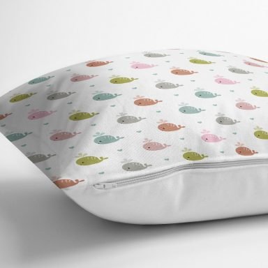Rengarenk Balina Desenli Dijital Baskılı Özel Tasarım Modern Yastık Kırlent Kılıfı