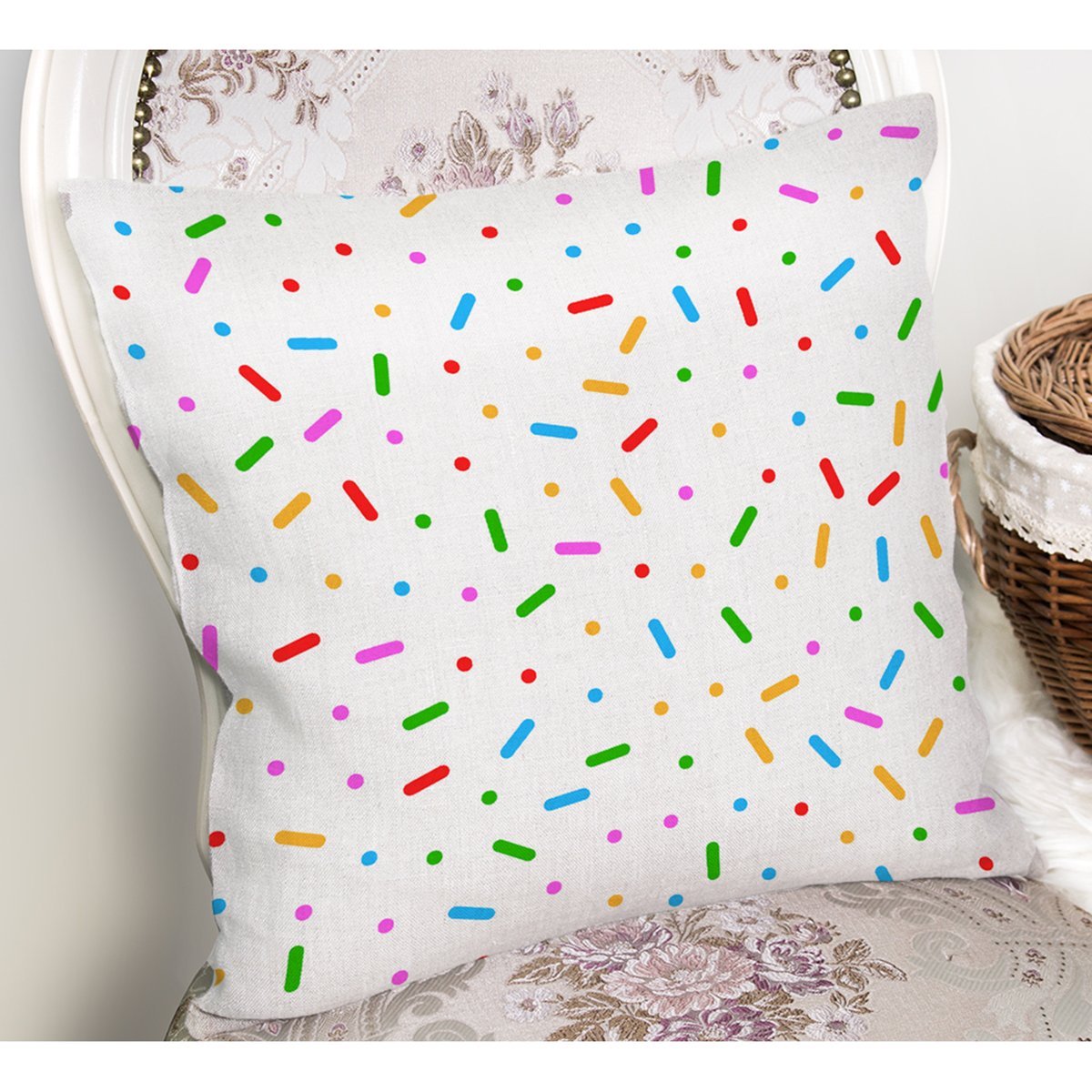 Rengarenk Nokta Ve Çizgi Motifli Dijital Baskılı Özel Tasarım Modern Yastık Kırlent Kılıfı