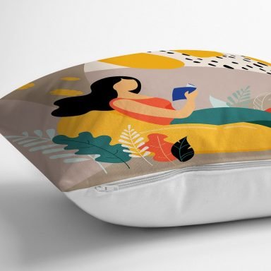 Renkli Özel Tasarım Kadın Figürlü Yastık Kırlent Kılıfı