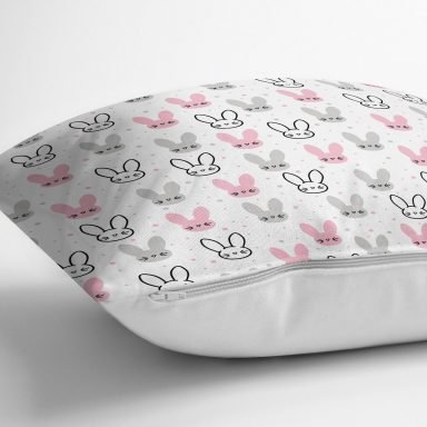 Renkli Tavşan Desenli Dijital Baskılı Özel Tasarım Modern Yastık Kırlent Kılıfı