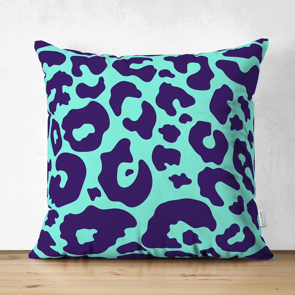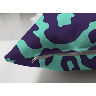 Renkli Zemin Üzerinde Geometrik Desenli Dijital Baskılı Modern Süet Yastık Kırlent Kılıfı
