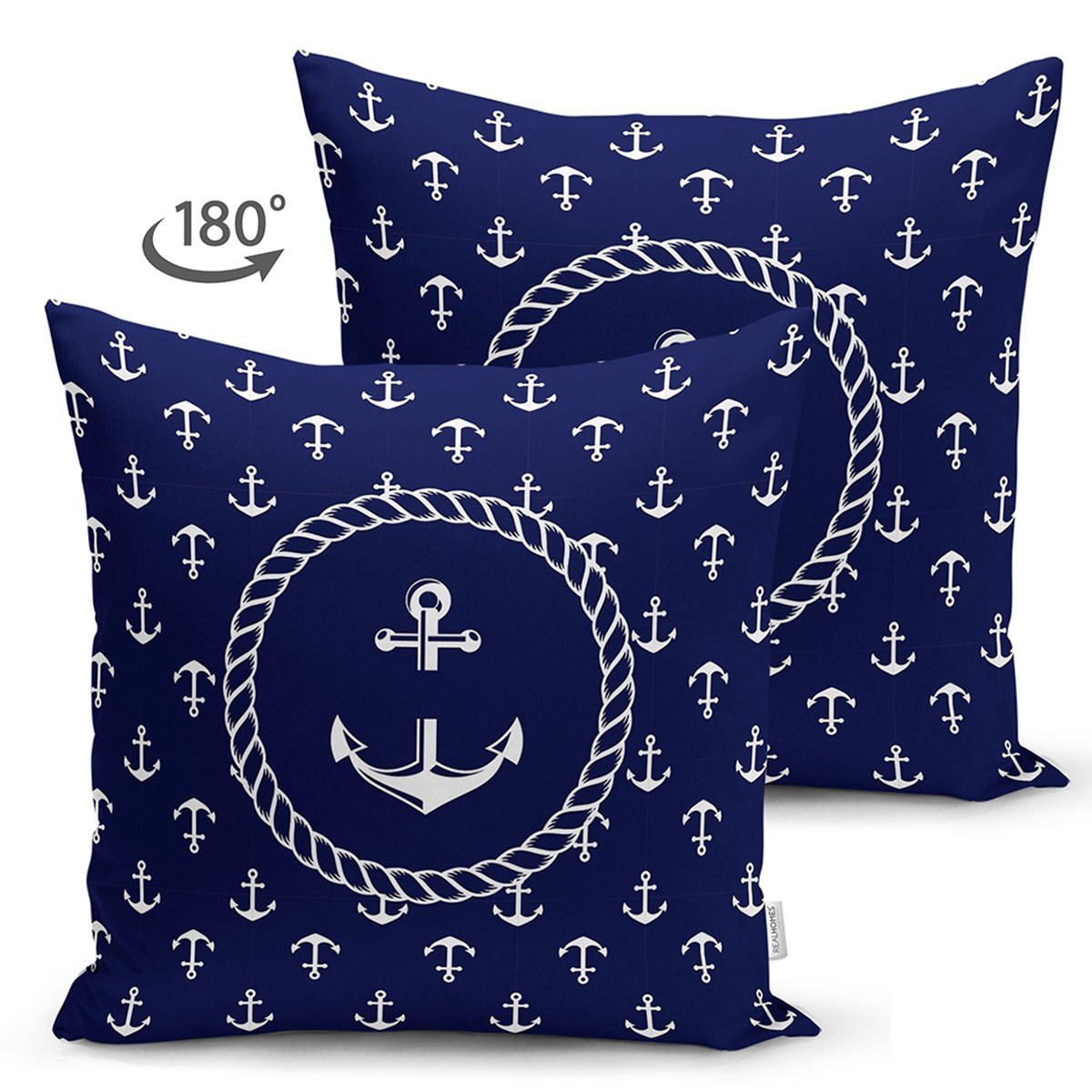 Renkli Zemin Üzerinde Modern Çapa Desenli Dijital Baskılı Modern Süet Yastık Kırlent Kılıfı