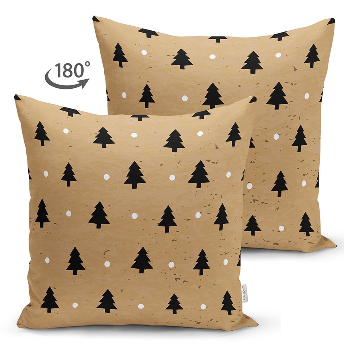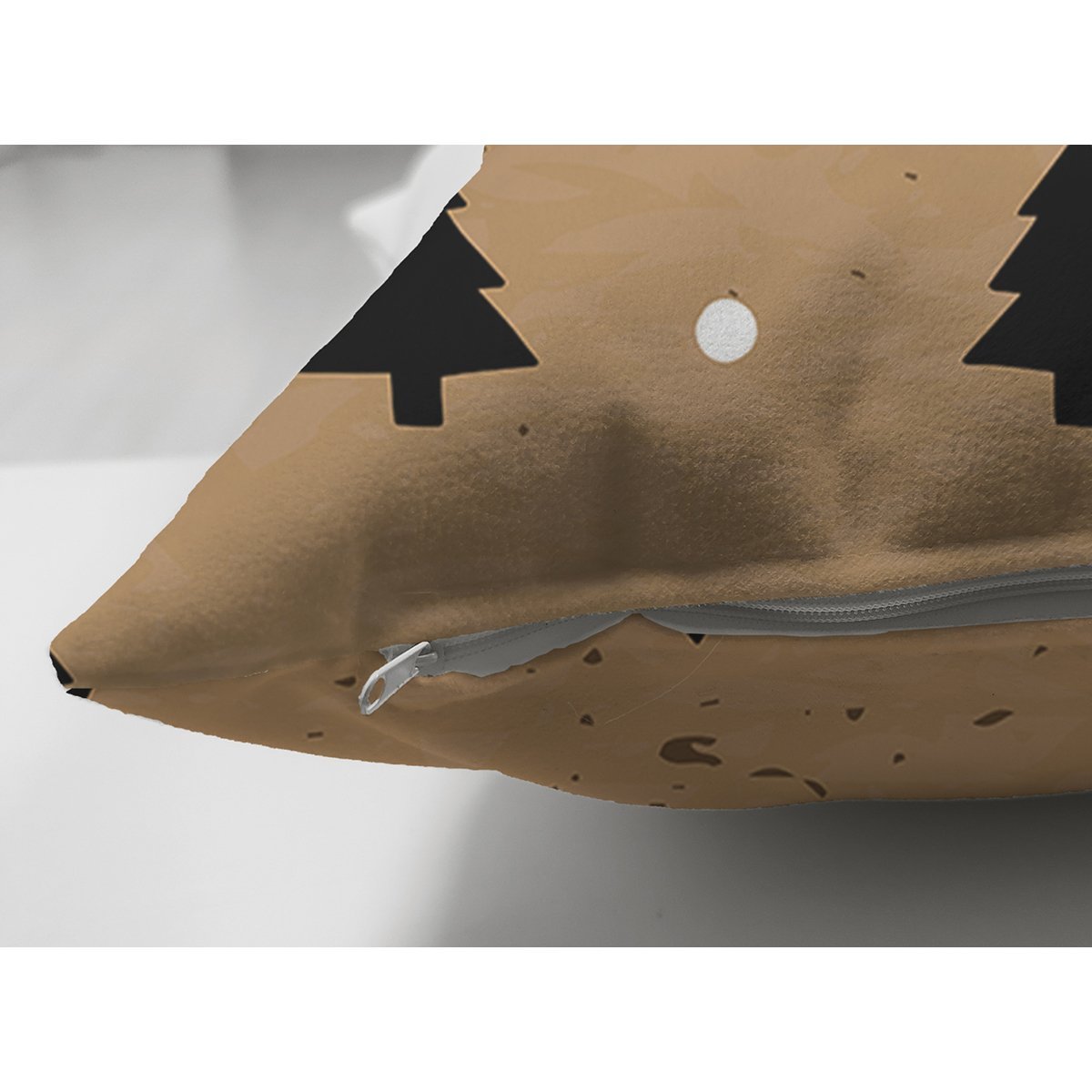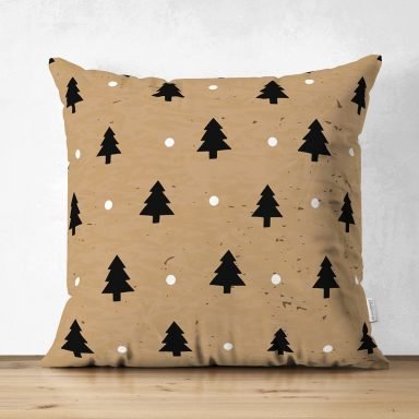 Renkli Zemin Üzerinde Modern Çizimli Çam Ağacı Desenli Dijital Baskılı Modern Süet Yastık Kırlent Kılıfı