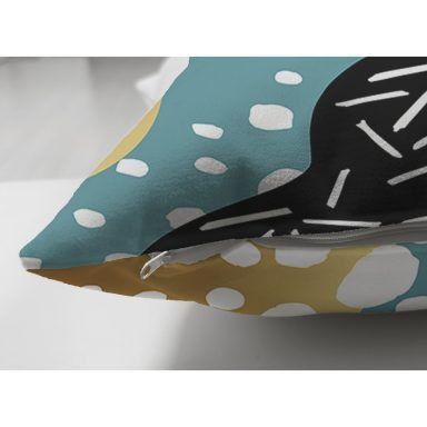 Renkli Zemin Üzerinde Modern Desenli Dijital Baskılı Modern Süet Yastık Kırlent Kılıfı
