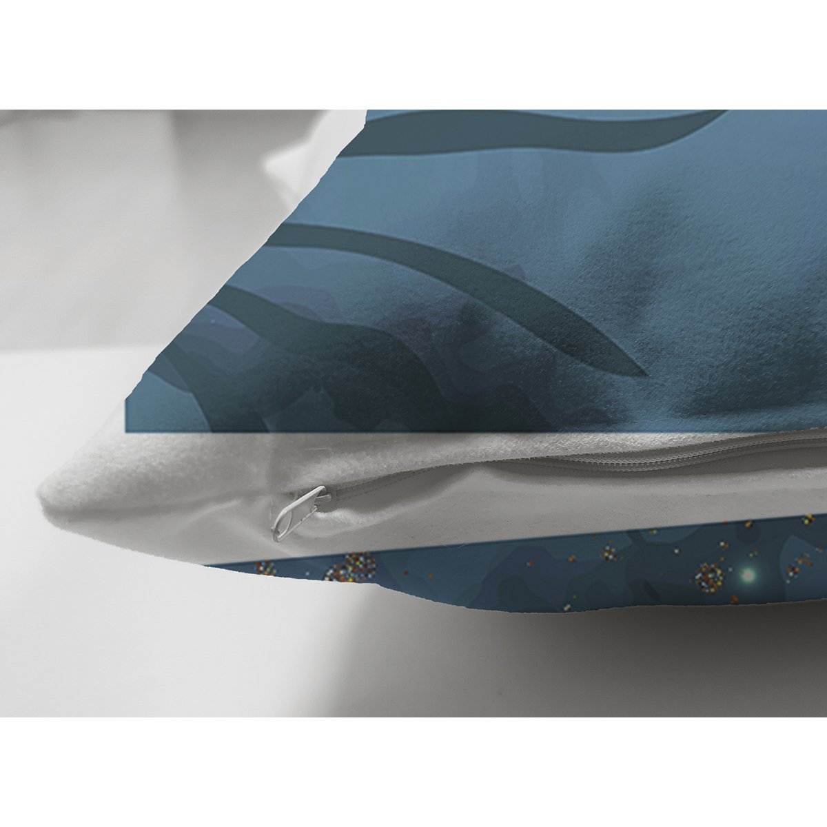 Renkli Zemin Üzerinde Onedraw Çizimli Dijital Baskılı Modern Süet Yastık Kırlent Kılıfı