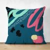 Renkli Zemin Üzerinde Soyut Desenli Dijital Baskılı Modern Süet Yastık Kırlent Kılıfı