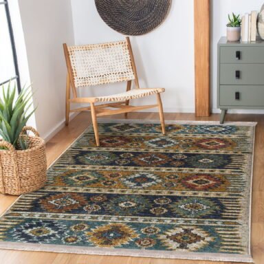 Renkli Zeminde Kilim Motifli Baklava Desenli Avangarde Vintage Koridor & Antre Salon & Oturma Odası Dijital Baskılı Makinede Yıkanabilir Kaymaz Taban Saçaklı Halı