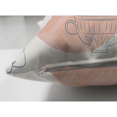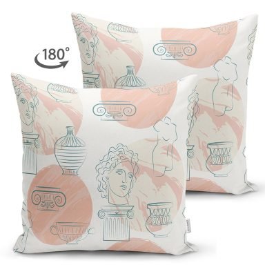 Renkli Zeminde Onedraw Antik Çizimli Dijital Baskılı Modern Süet Yastık Kırlent Kılıfı