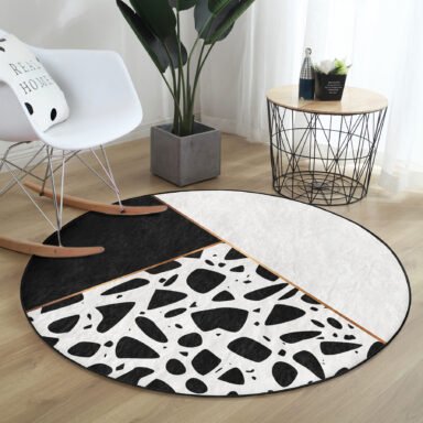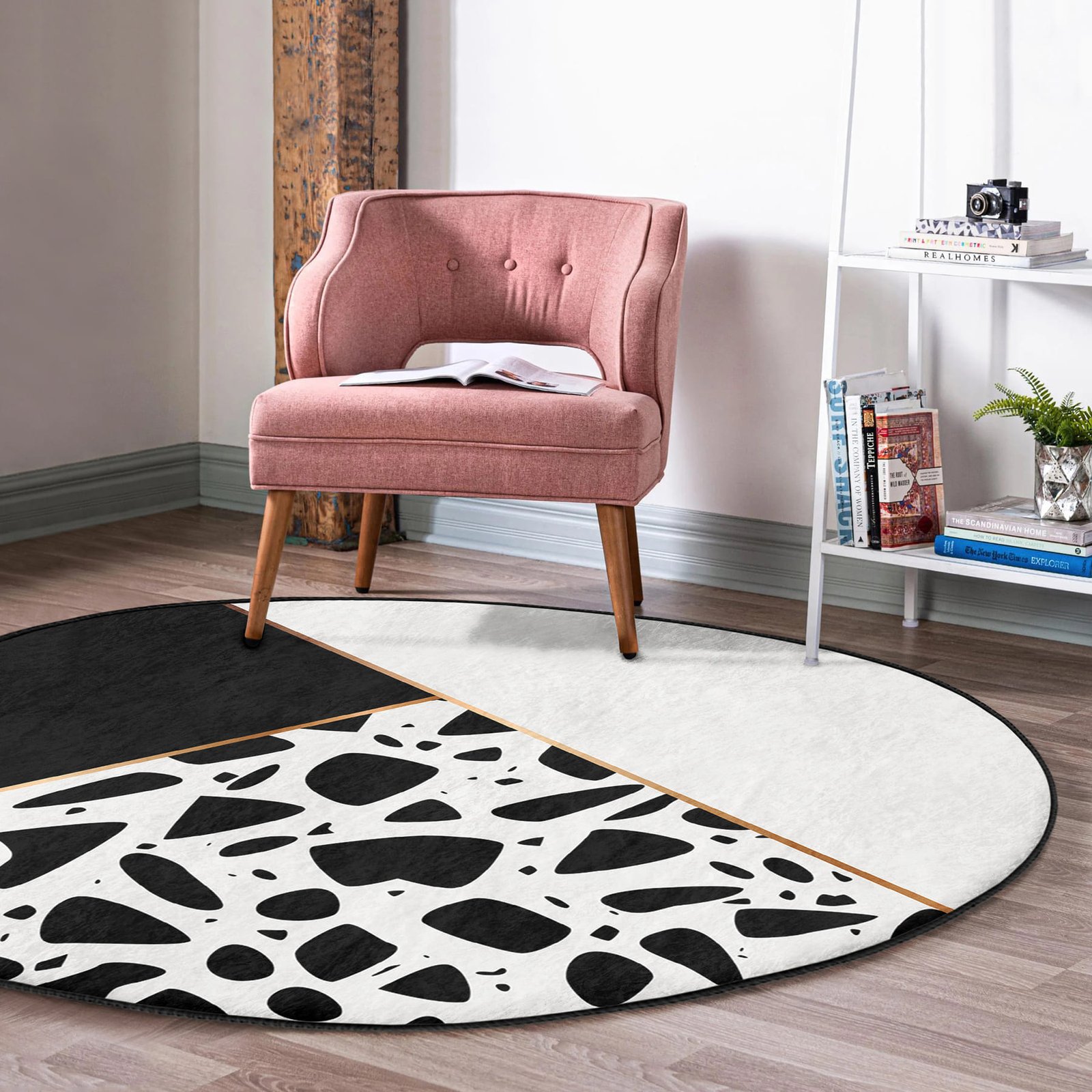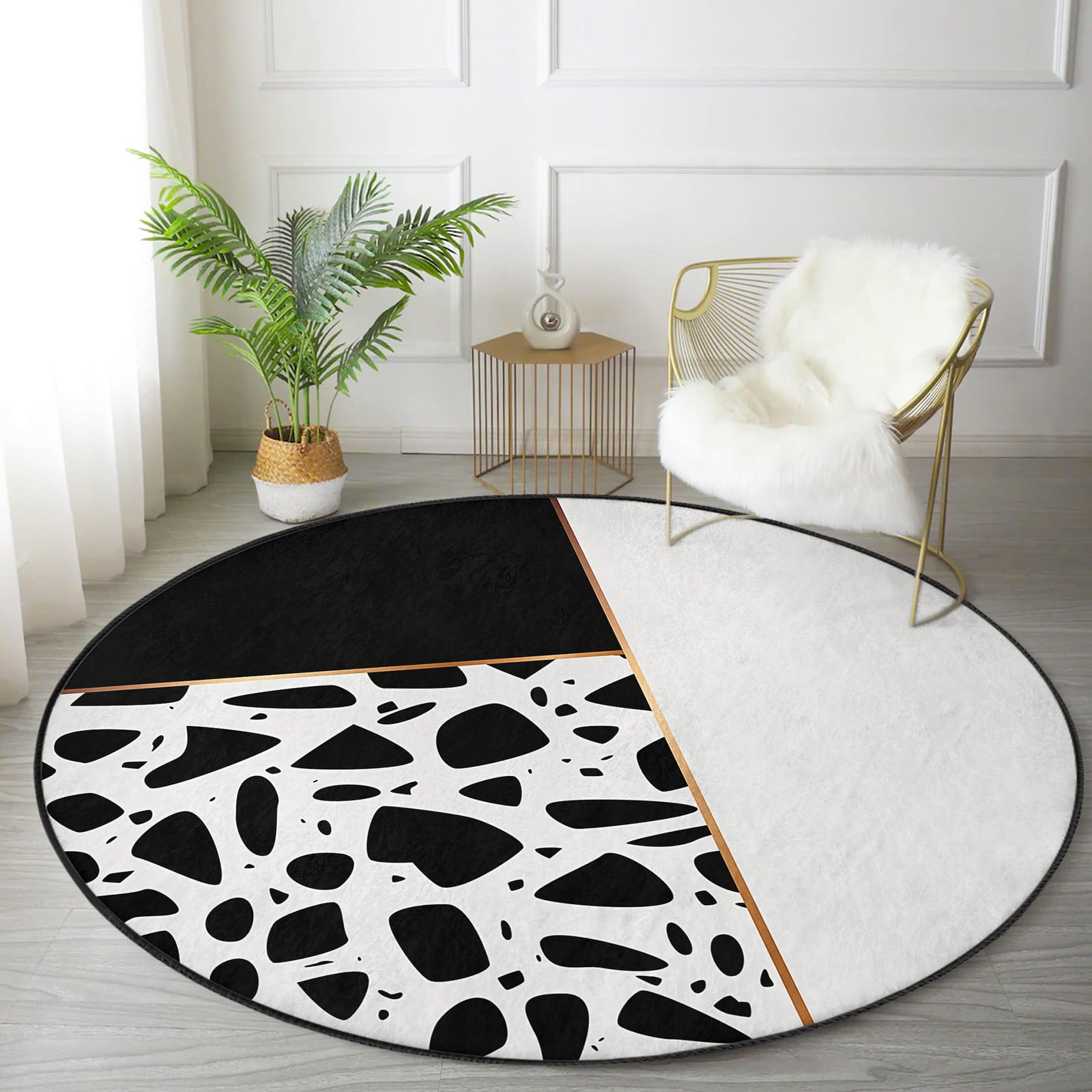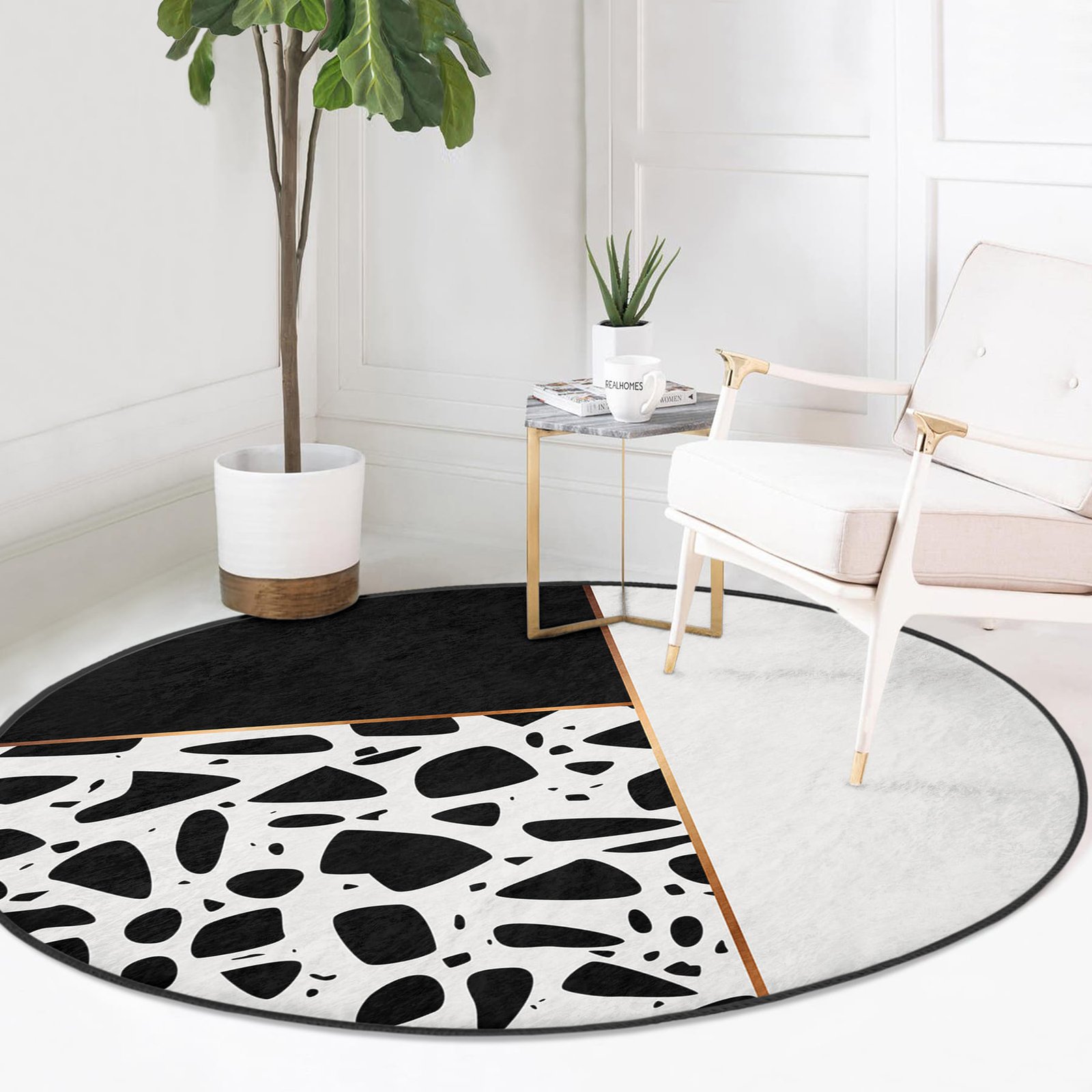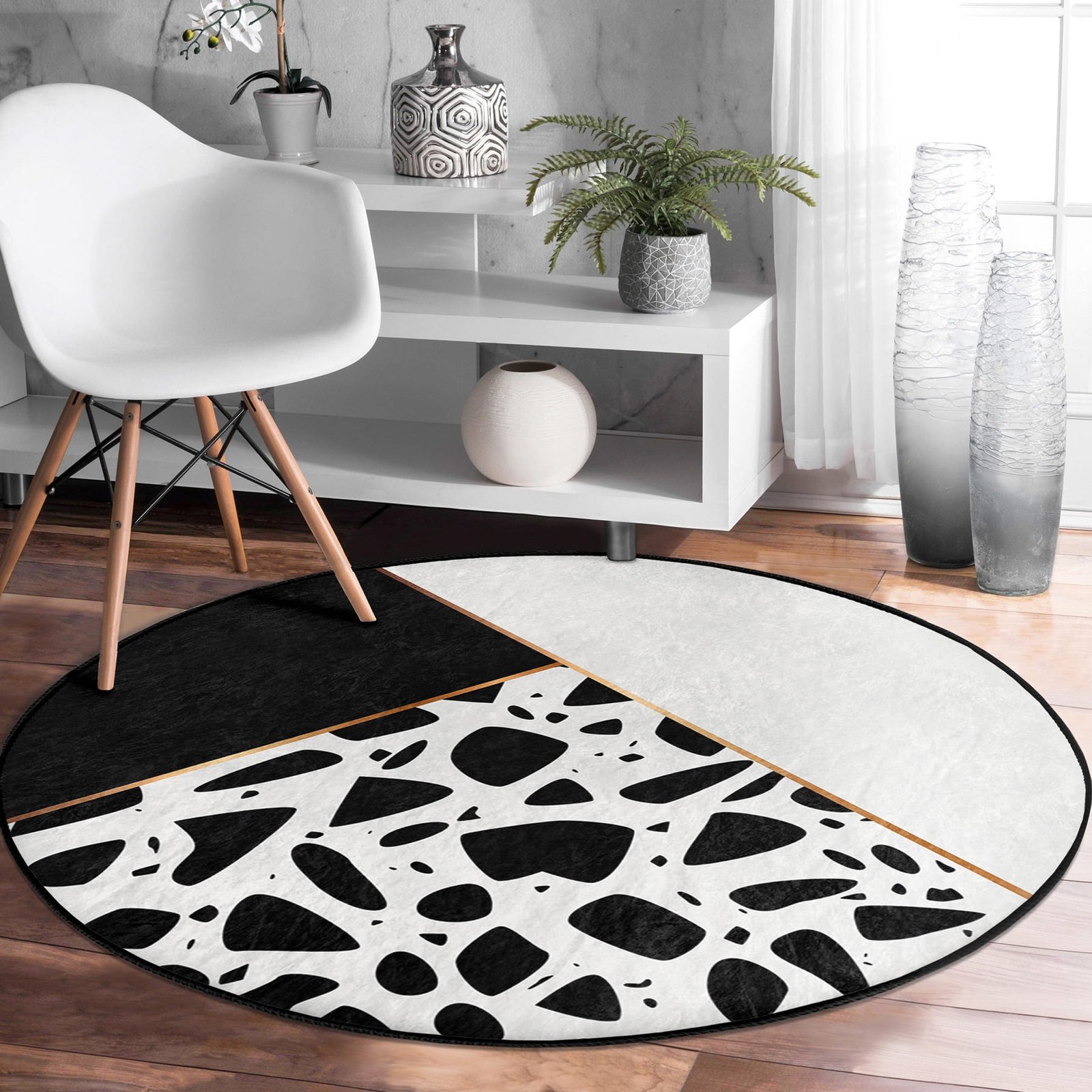 Renkli Zeminde Siyah Puantiye Desenli Modern Koridor Ve Antre Yıkanabilir Kaymaz Taban Yuvarlak Halı
