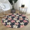 Renkli Zeminli Onedraw Çizimli Yaprak Desenli Modern Kahverengi Salon Kaymaz Tabanlı Yuvarlak Halı