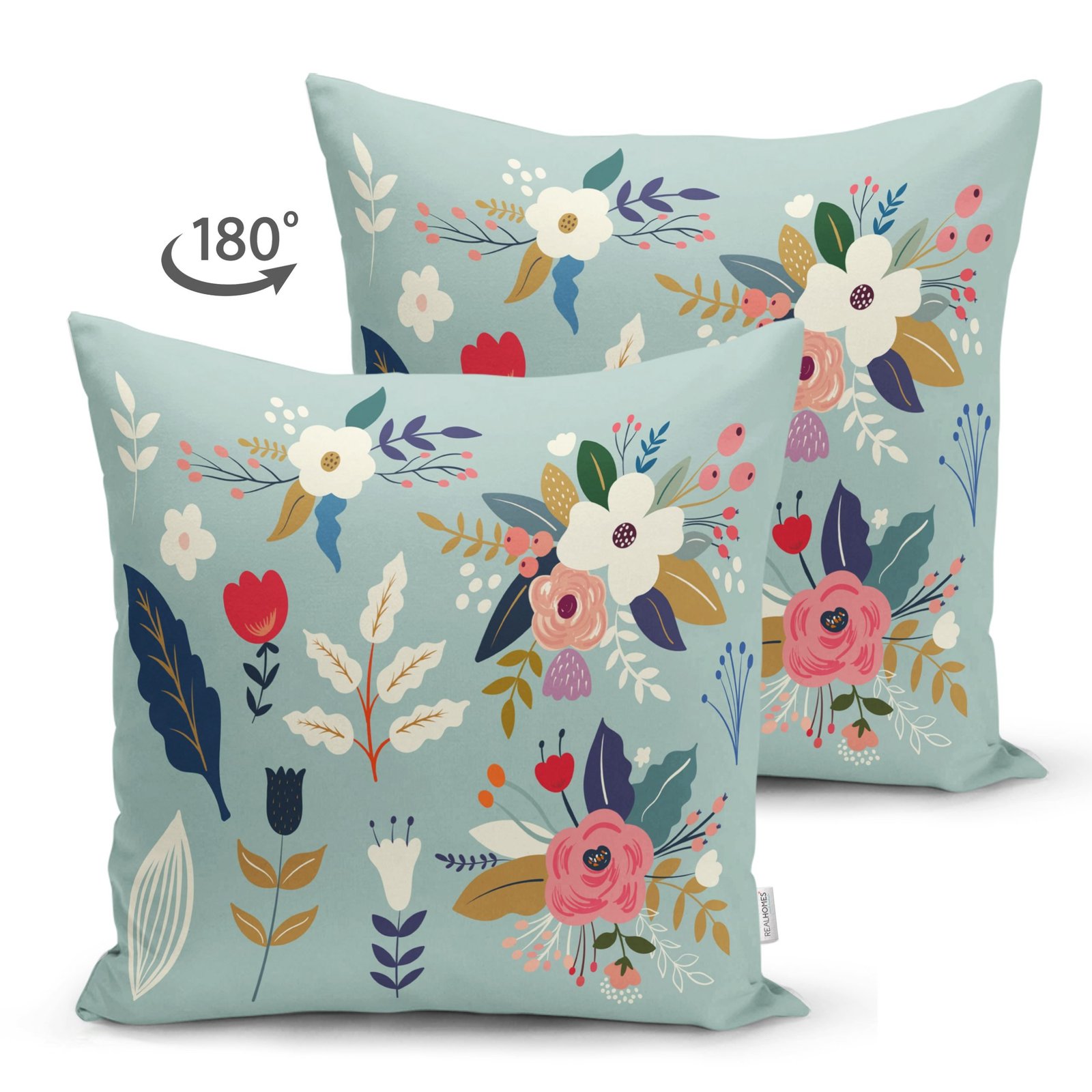Renkli Zeminli Renkli Çiçek Desenli Dijital Baskılı Modern Süet Yastık Kırlent Kılıfı