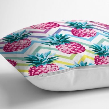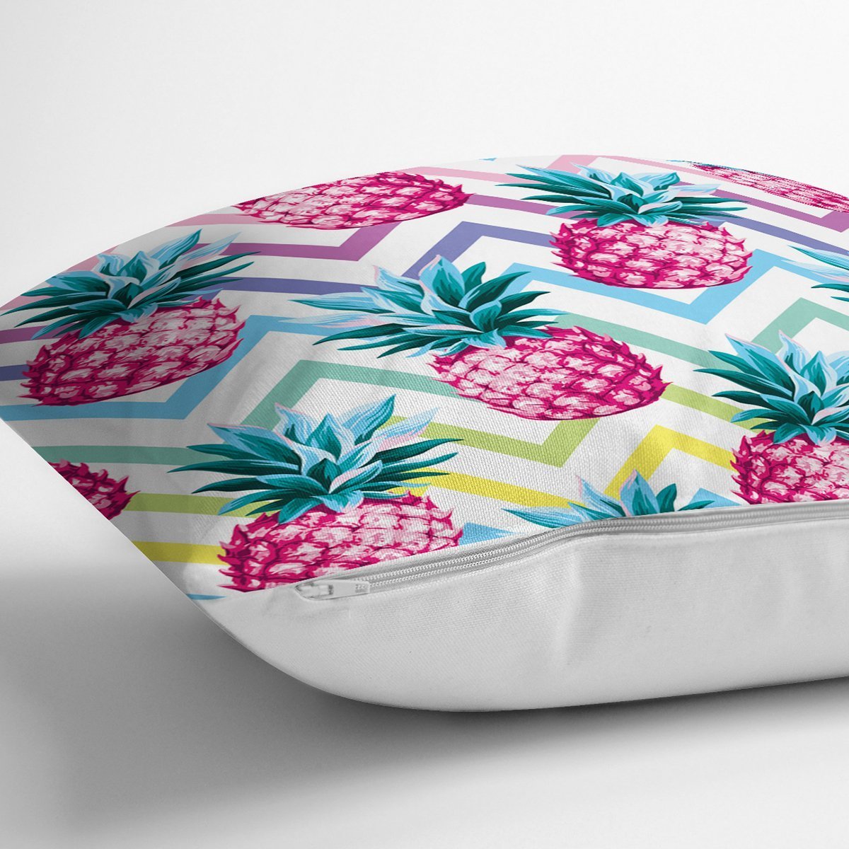 Renkli Zigzag Desenli Ananaslar Modern Tasarımlı Yastık Kırlent Kılıfı