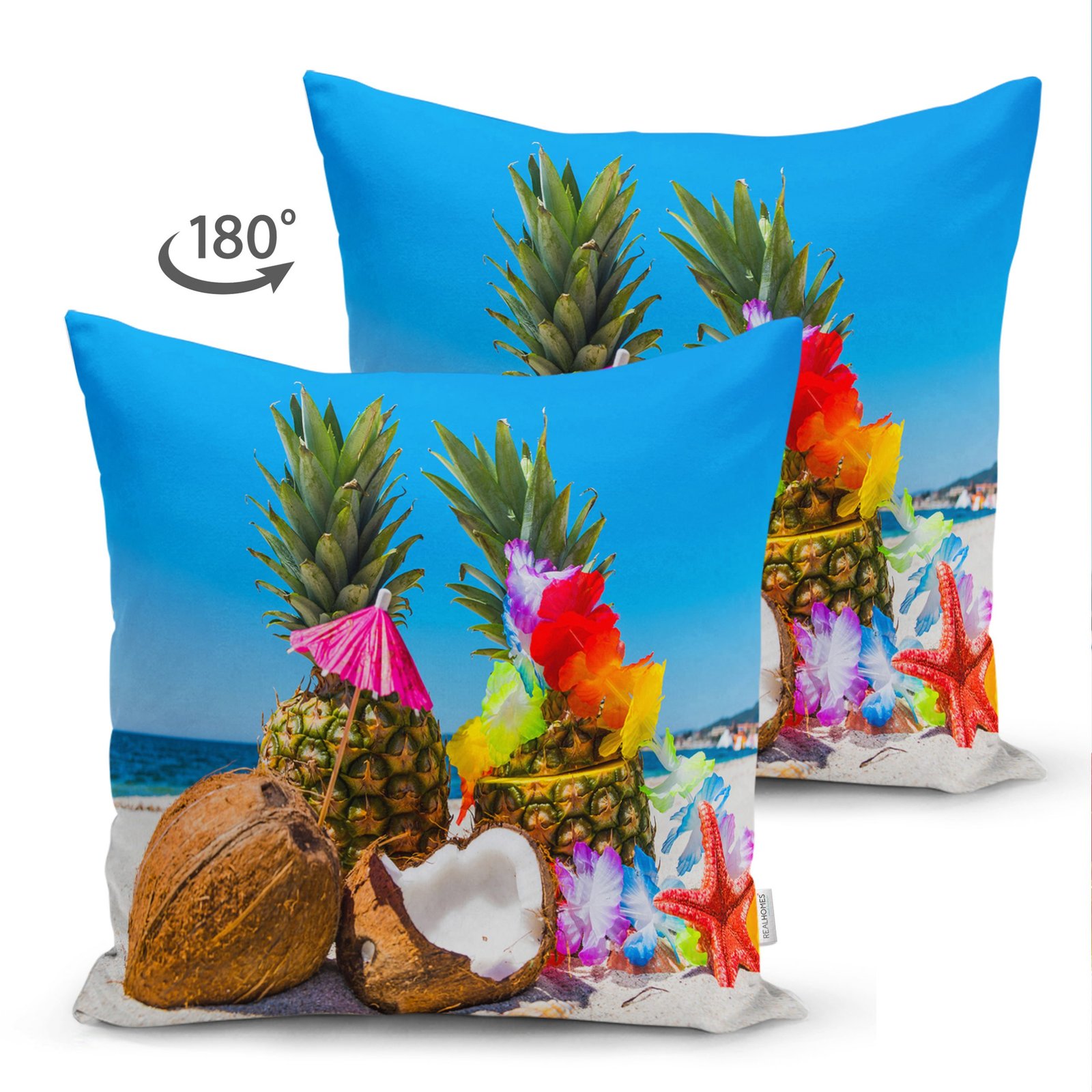 Sahilde Ananaslar Dijital Baskılı Modern Süet Yastık Kırlent Kılıfı