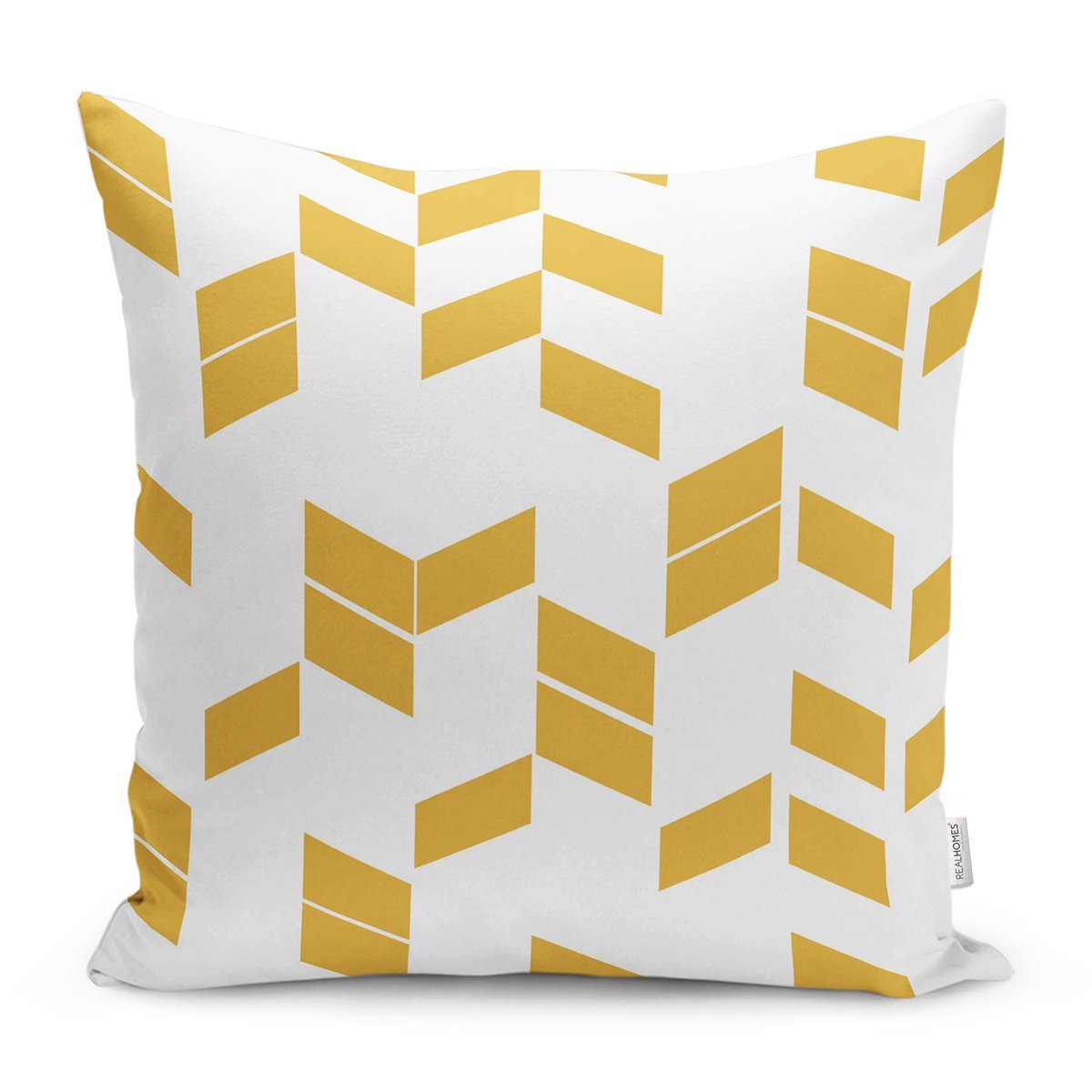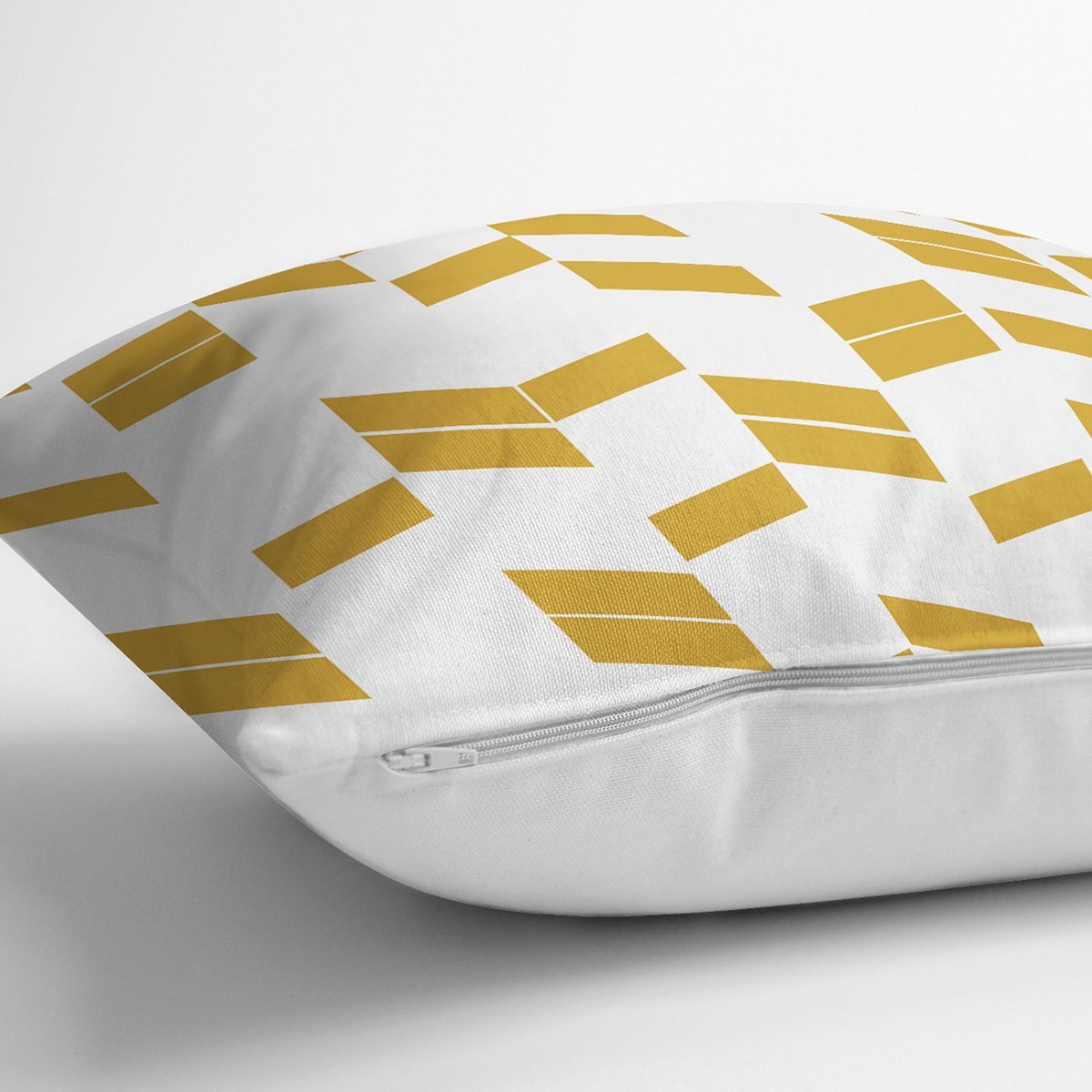 Sarı Geometrik Çizimli Dekoratif Yastık Kırlent Kılıfı
