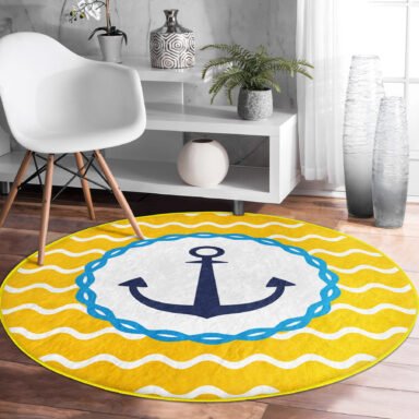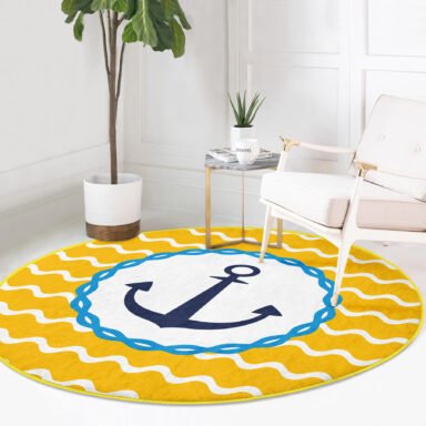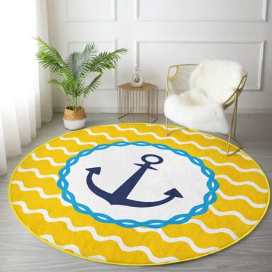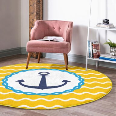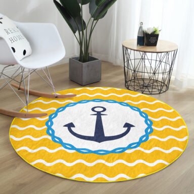 Sarı Zeminde Çapa Çizimli Dijital Baskılı Modern Gold Outdoor Yıkanabilir Kaymaz Taban Yuvarlak Halı