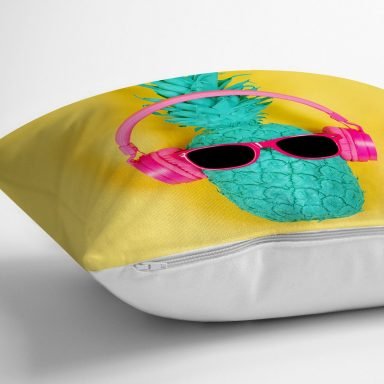 Sarı Zeminli Ananas Detaylı Modern Yastık Kırlent Kılıfı