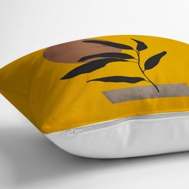 Sarı Zeminli Tropik Yaprak Motifli Yastık Kırlent Kılıfı
