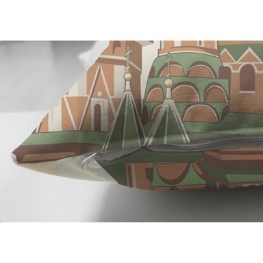 Şato Temalı Dijital Baskılı Süet Yastık Kırlent Kılıfı