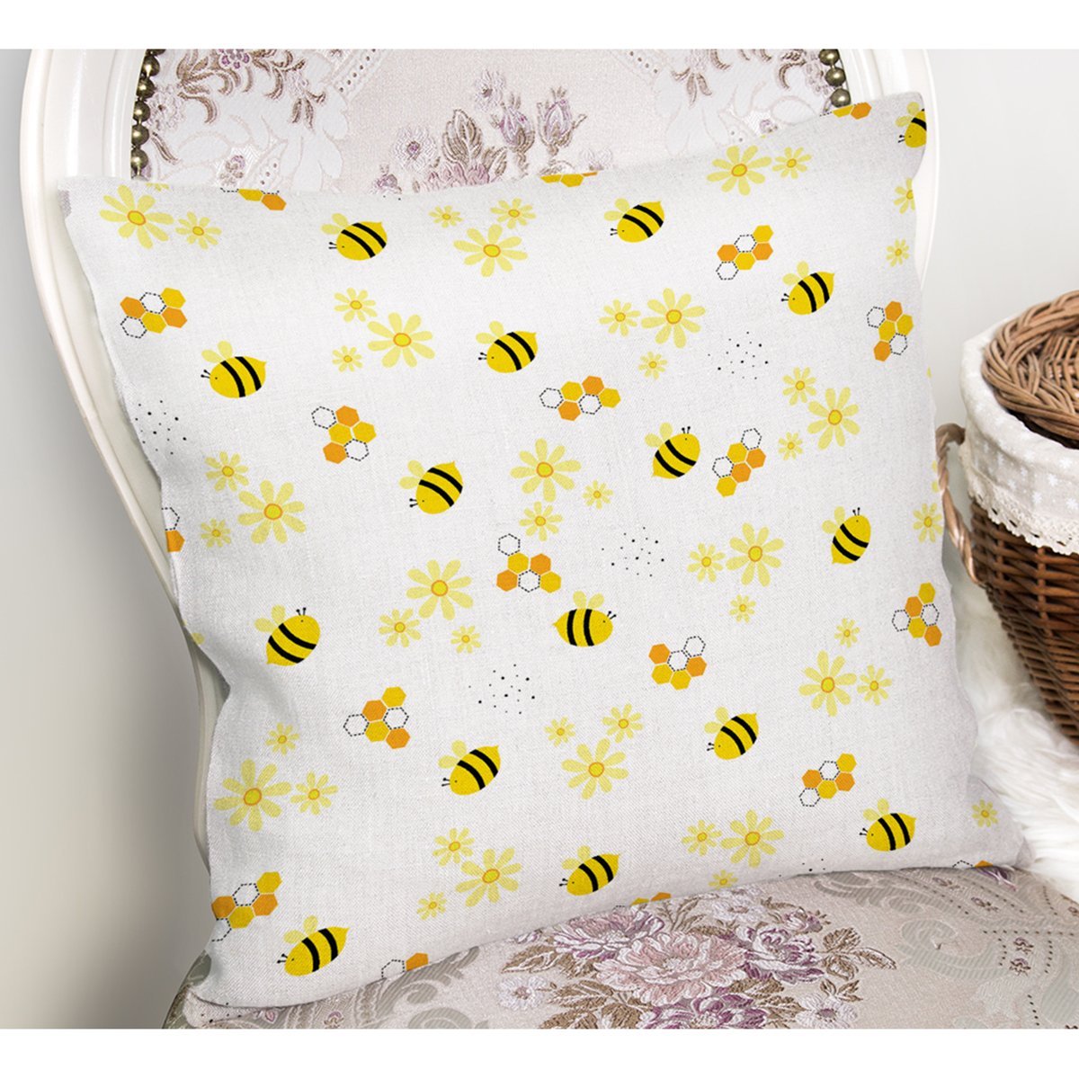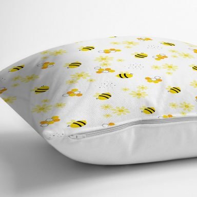 Sevimli Arı Desenli Dijital Baskılı Özel Tasarım Modern Yastık Kırlent Kılıfı