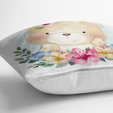 Sevimli Bebek Ayıcık Çocuk Odası Dijital Baskılı Dekoratif Yastık Kırlent Kılıfı