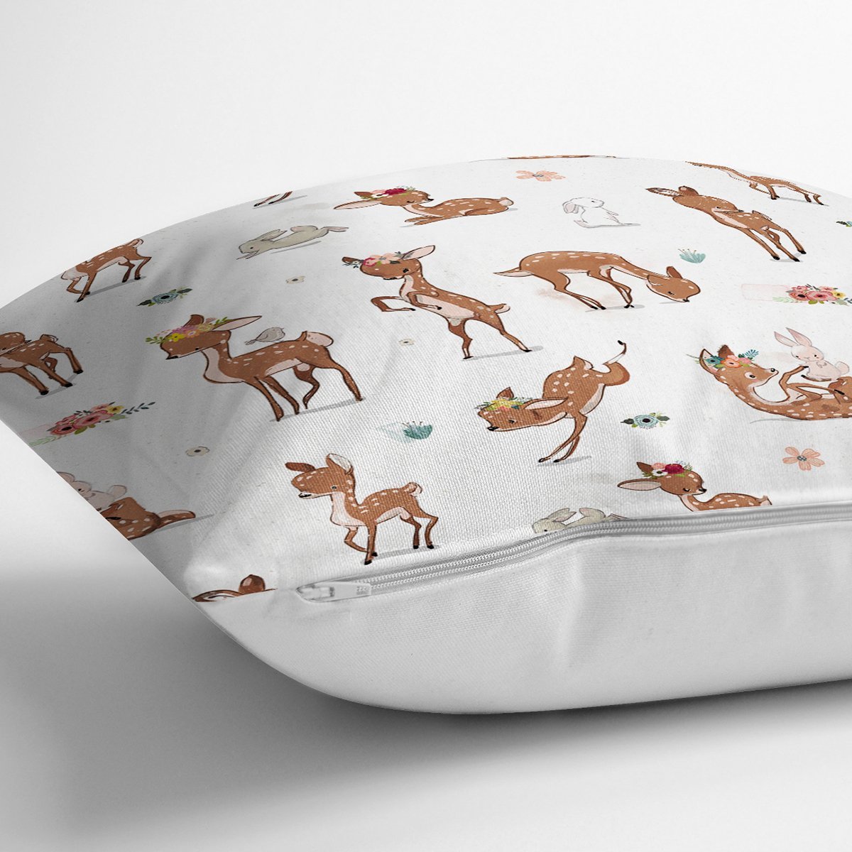Sevimli Ceylan Ve Tavşan Motifli Dijital Baskılı Özel Tasarım Modern Yastık Kırlent Kılıfı