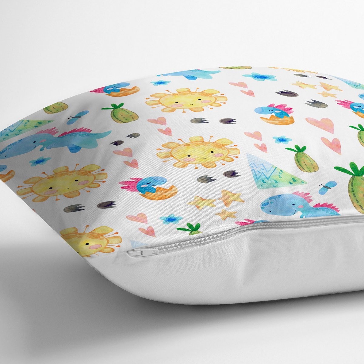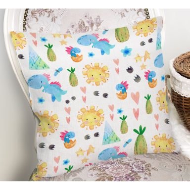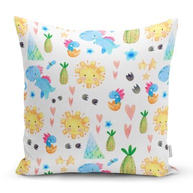 Sevimli Dinozor Temalı Dijital Baskılı Özel Tasarım Modern Yastık Kırlent Kılıfı