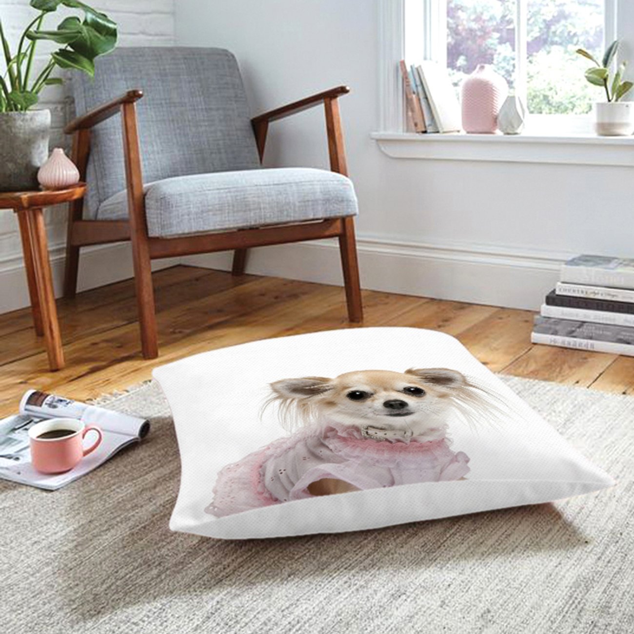 Sevimli Köpek Desenli Dijital Baskılı Modern Hayvan Yer Minderi
