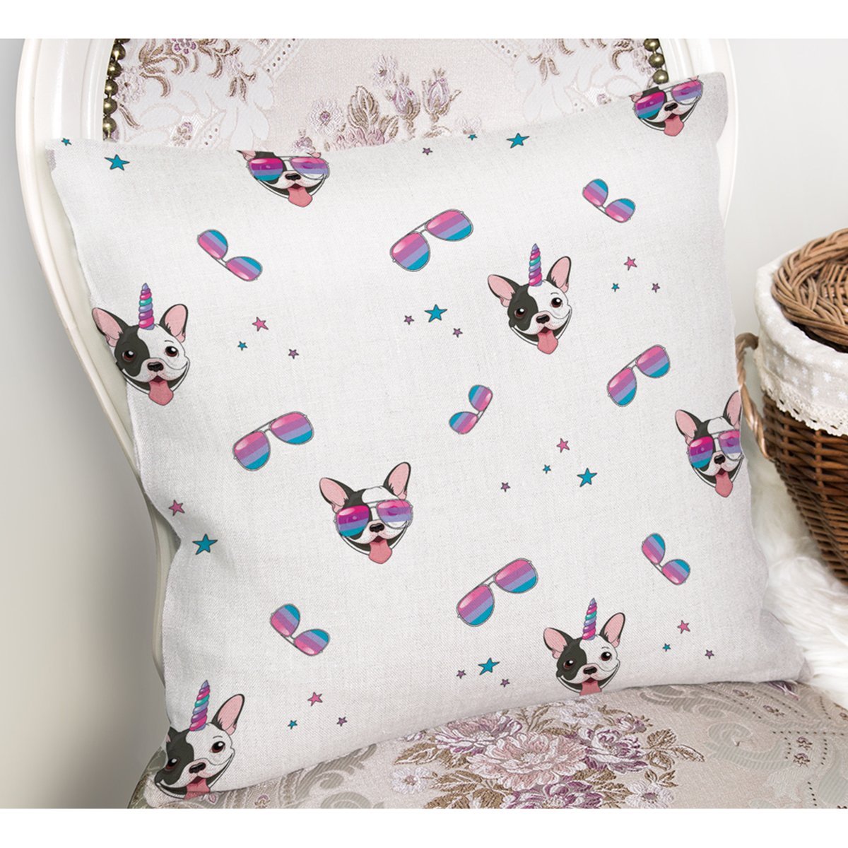 Sevimli Köpek Motifli Dijital Baskılı Özel Tasarım Modern Yastık Kırlent Kılıfı