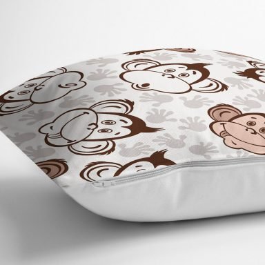 Sevimli Maymunlar Desenli Dijital Baskılı Özel Tasarım Modern Yastık Kırlent Kılıfı