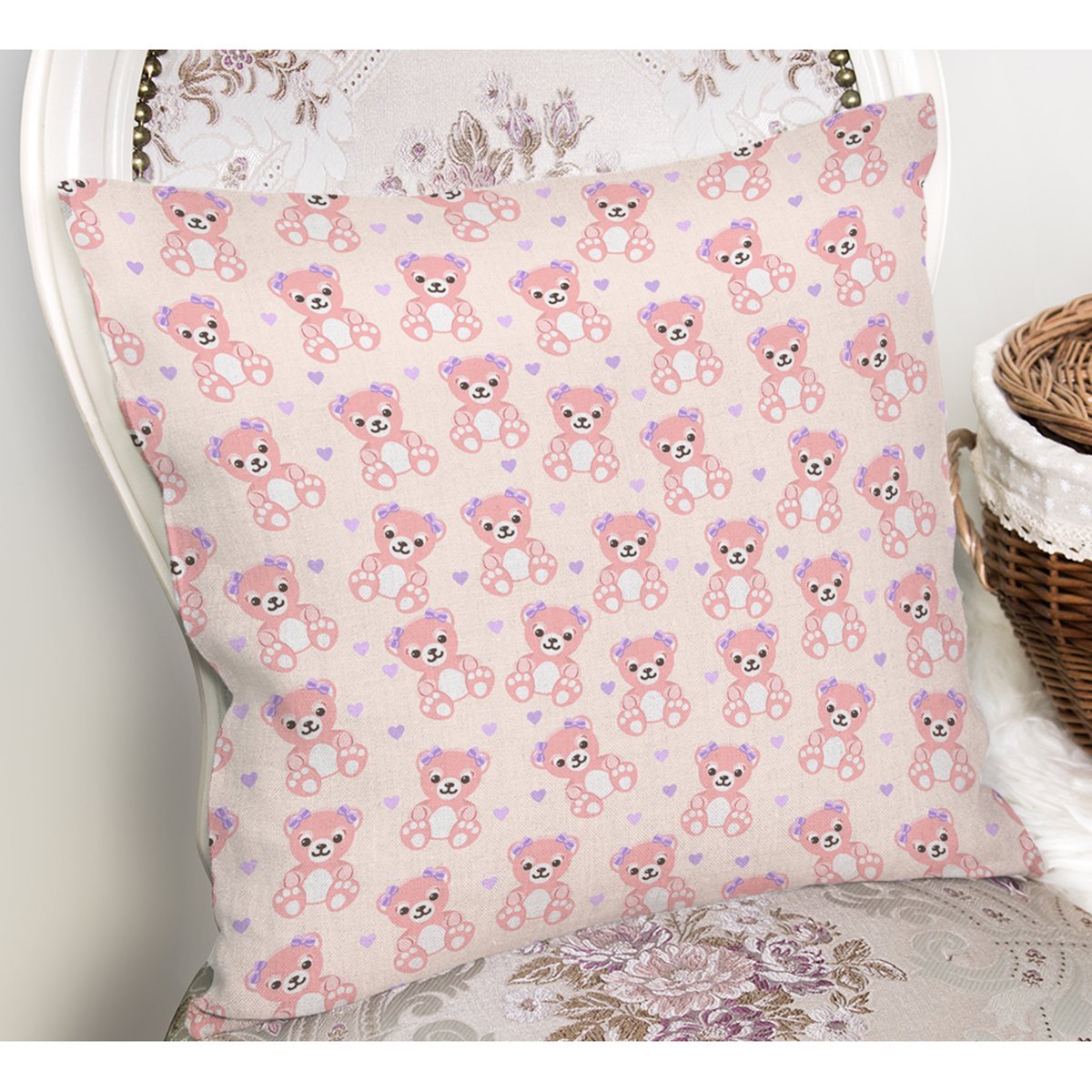 Sevimli Minik Ayıcık Motifli Dijital Baskılı Özel Tasarım Modern Yastık Kırlent Kılıfı