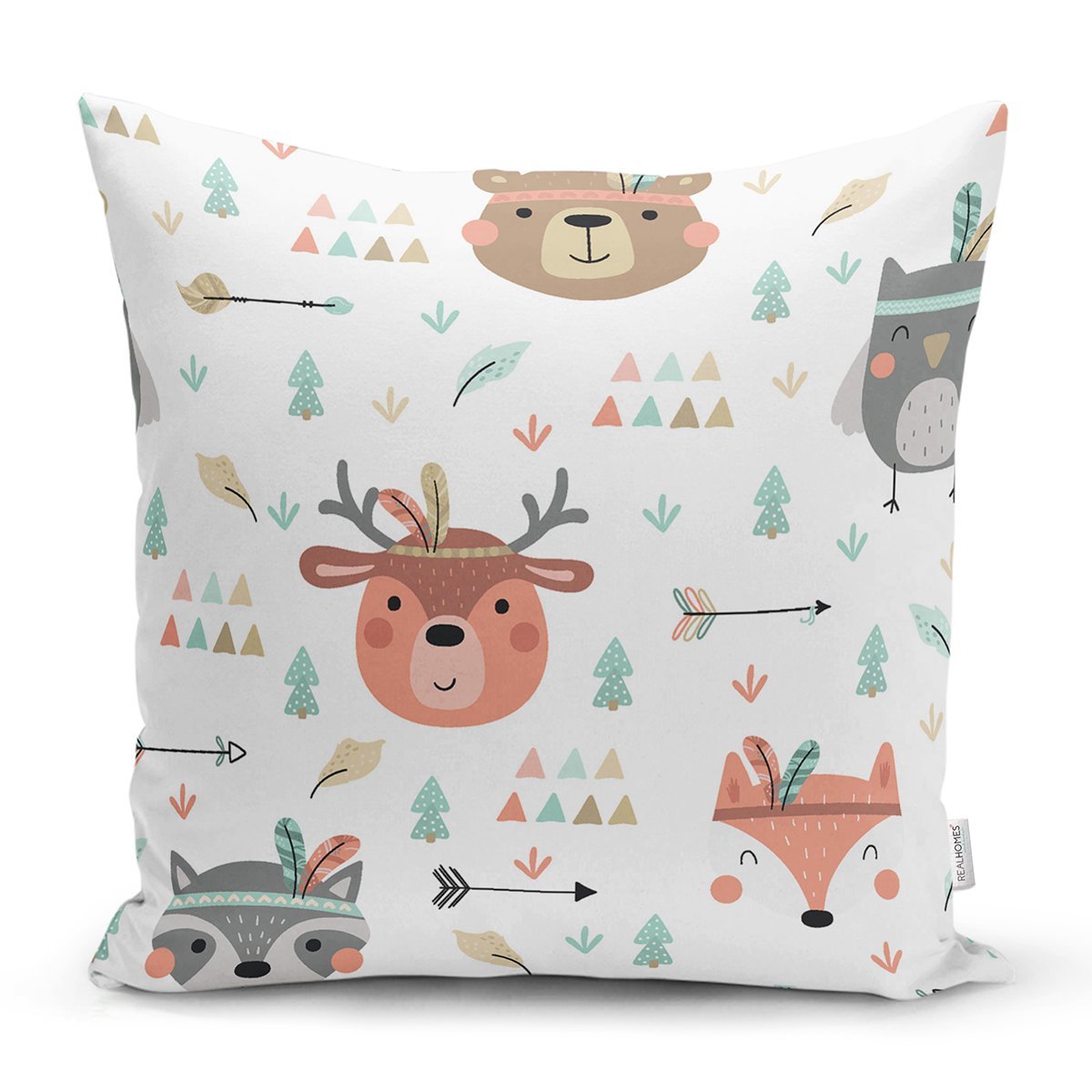 Sevimli Orman Hayvanları Motifli Dijital Baskılı Özel Tasarım Modern Yastık Kırlent Kılıfı