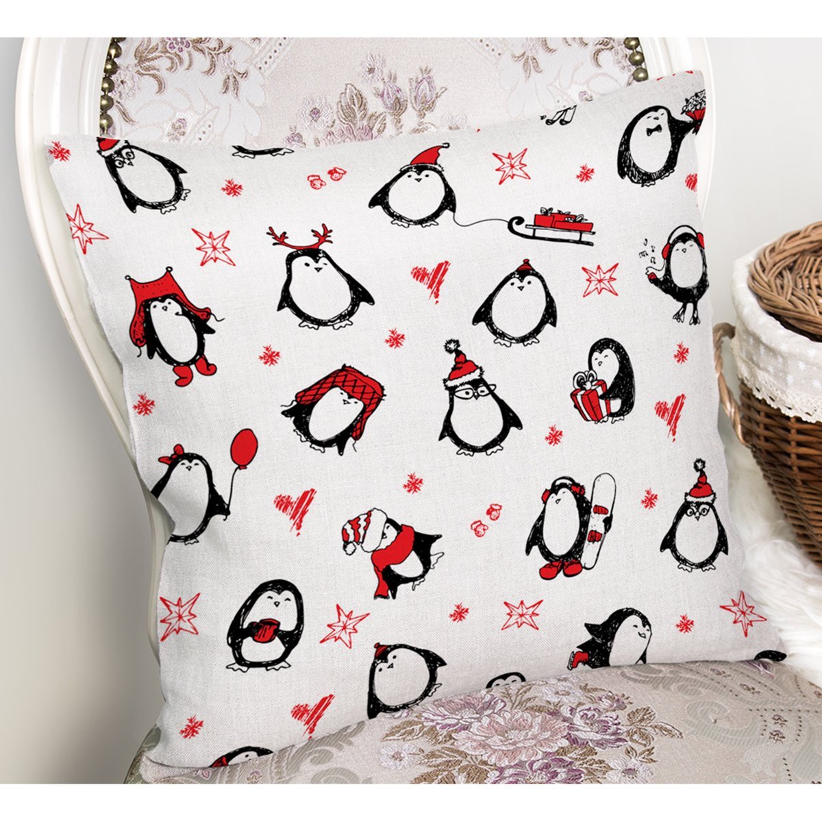 Sevimli Penguen Motifli Dijital Baskılı Özel Tasarım Modern Yastık Kırlent Kılıfı