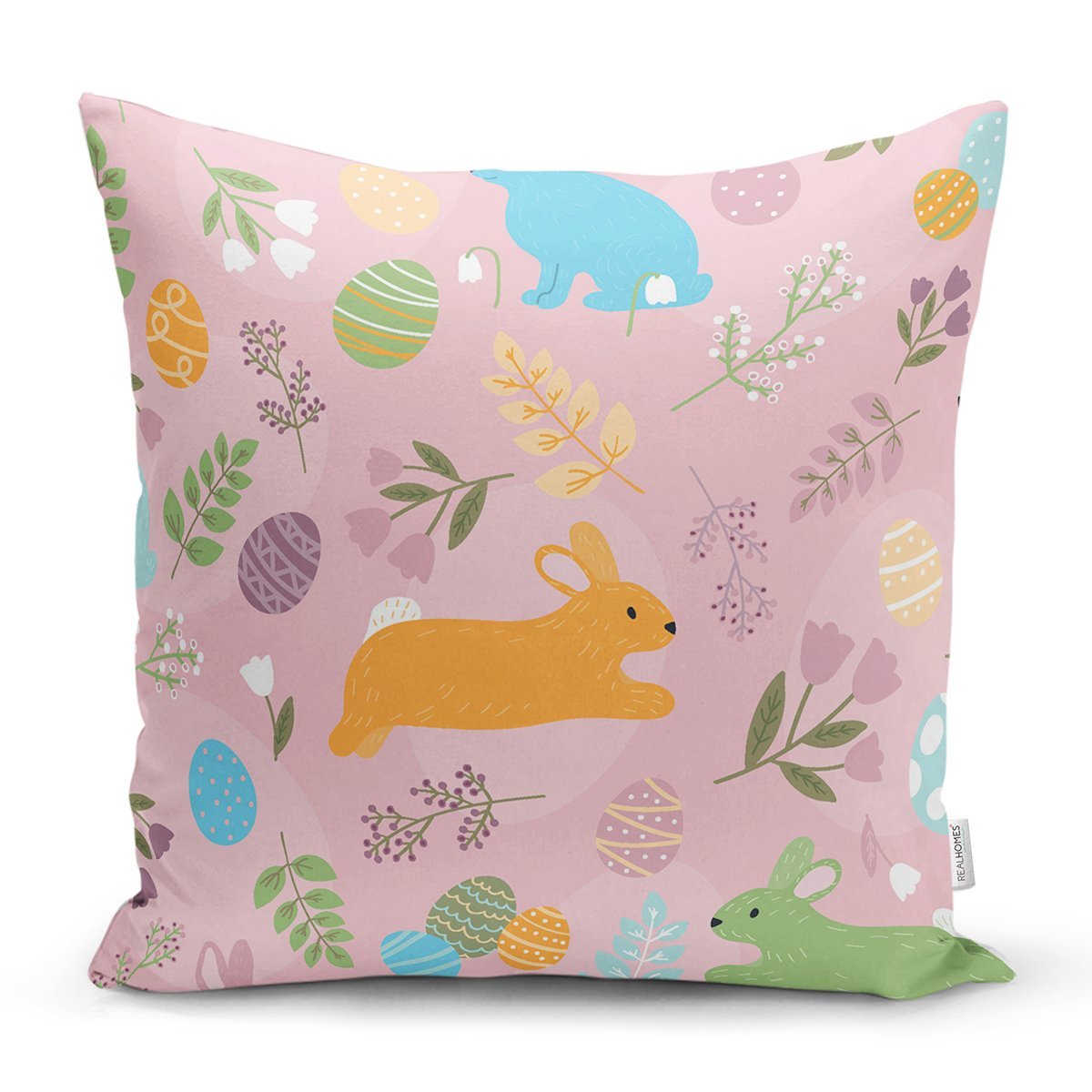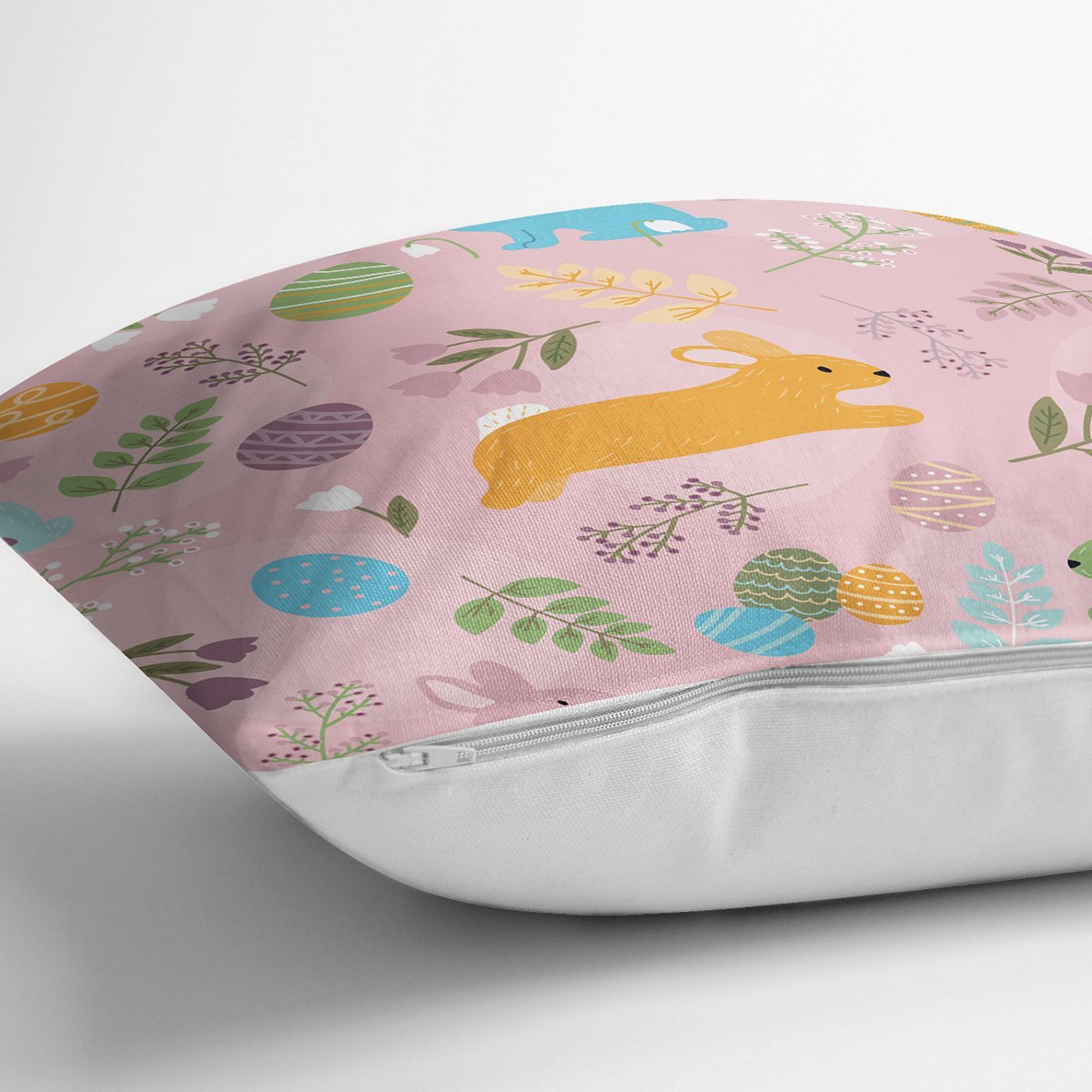 Sevimli Rengarenk Tavşanlar Desenli Dijital Baskılı Özel Tasarım Modern Yastık Kırlent Kılıfı