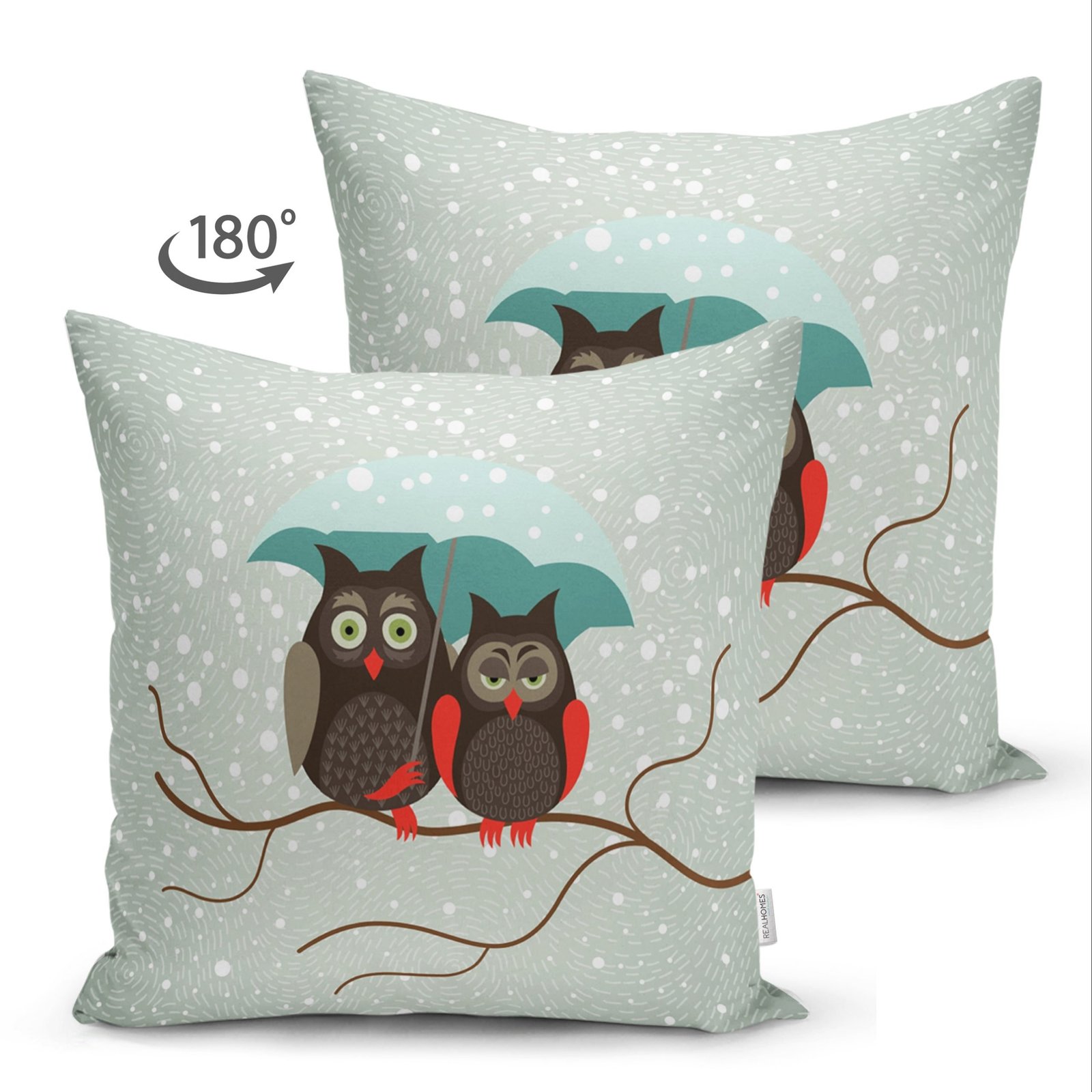 Sevimli Şemsiyeli Baykuş Figürlü Özel Tasarım Dijital Baskılı Modern Süet Yastık Kırlent Kılıfı