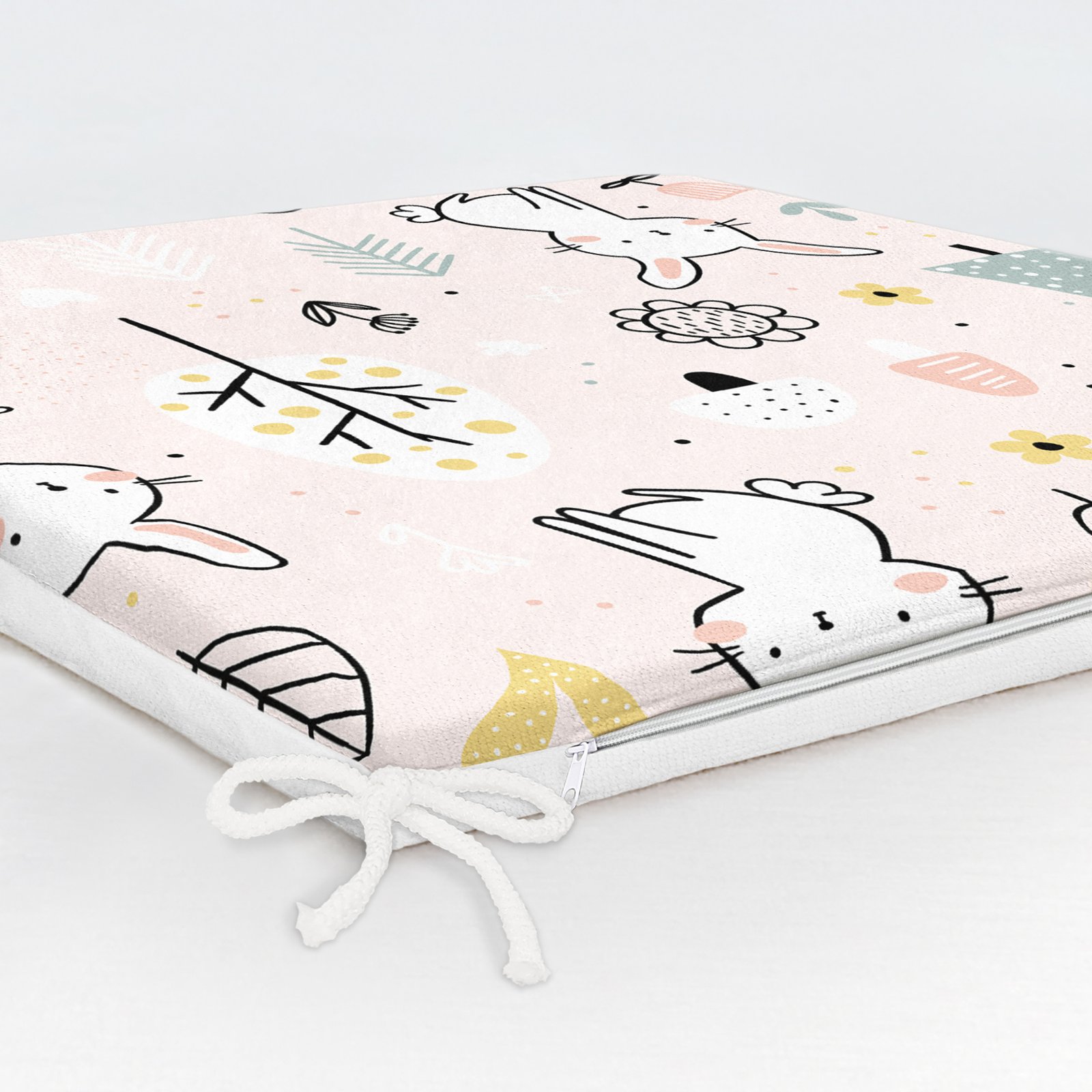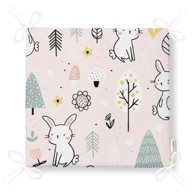 Sevimli Tavşan Çizimli Özel Tasarım Dijital Baskılı Modern Fermuarlı Sandalye Minderi