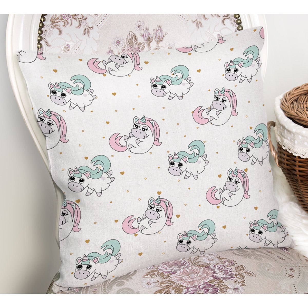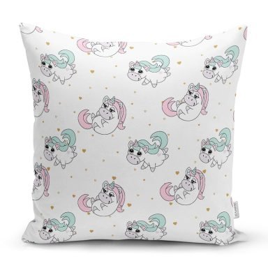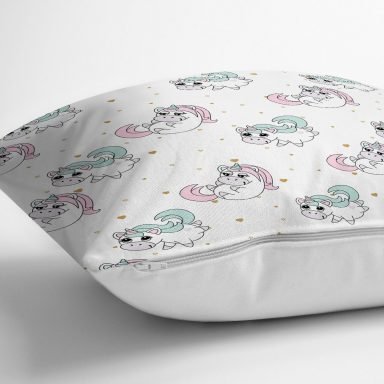 Sevimli Unicorn Desenli Dijital Baskılı Özel Tasarım Modern Yastık Kırlent Kılıfı