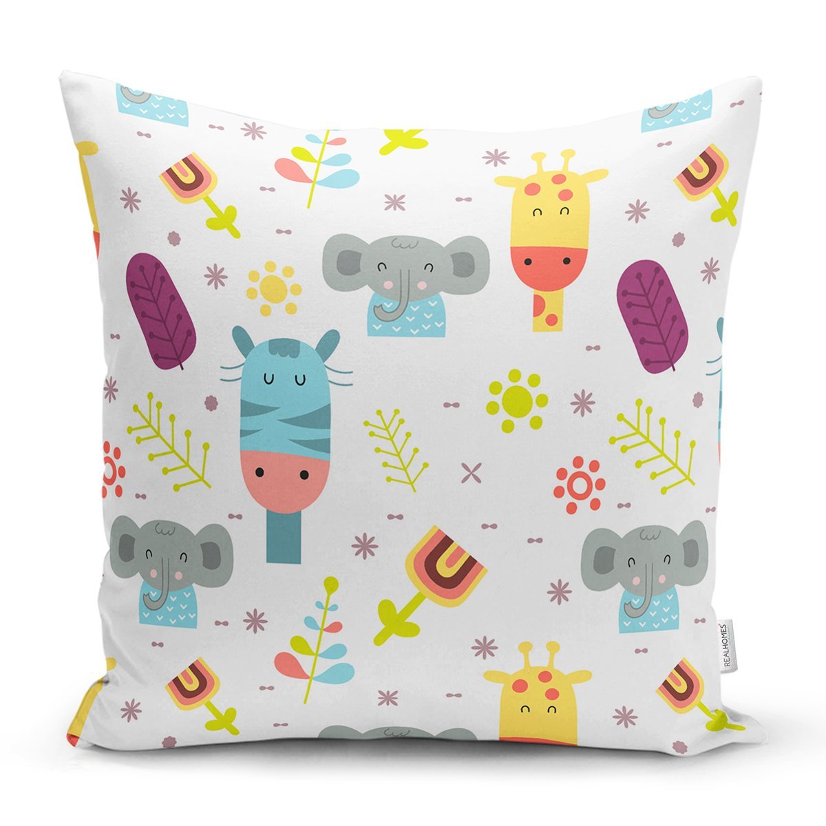 Şirin Orman Hayvanları Desenli Dijital Baskılı Özel Tasarım Modern Yastık Kırlent Kılıfı