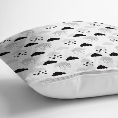 Siyah Beyaz Bulut Motifli Dijital Baskılı Özel Tasarım Modern Yastık Kırlent Kılıfı